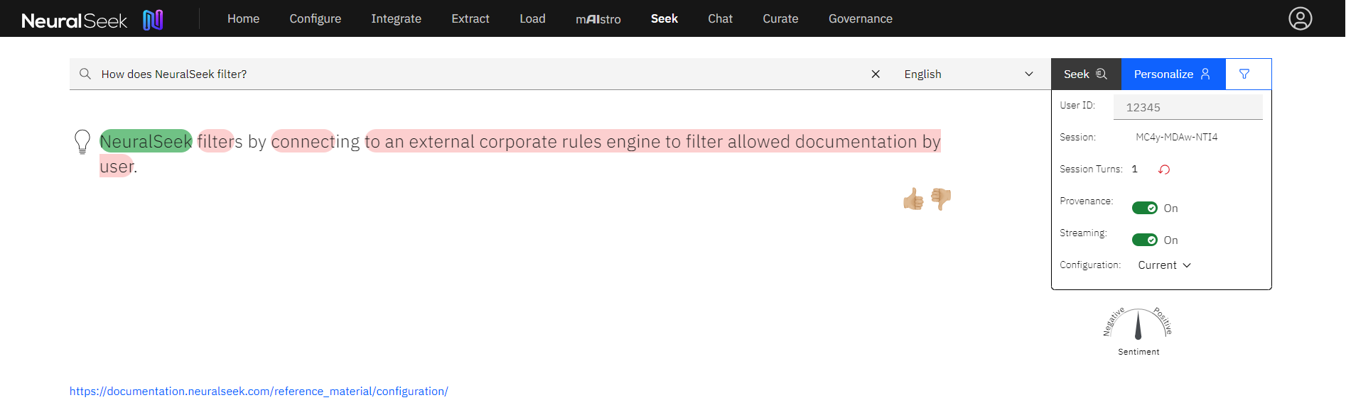 Seektab within NeuralSeek. - Query