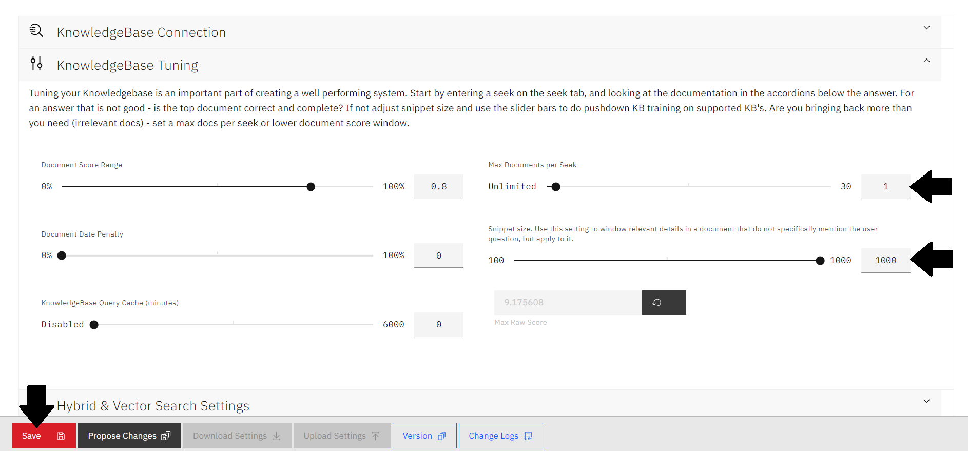 - Navigate to the KnowledgeBase Tuning section of the