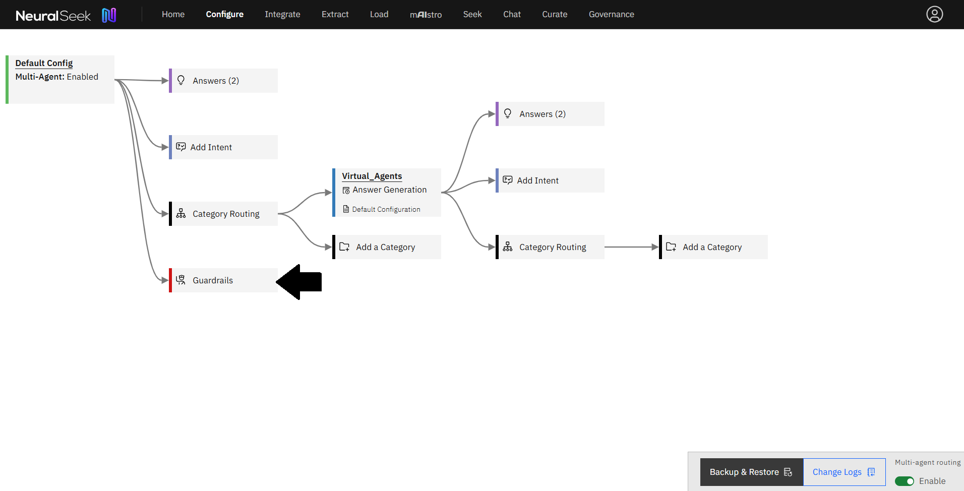 Navigate to the Configure screen in NeuralSeek and click the Guardrails box.