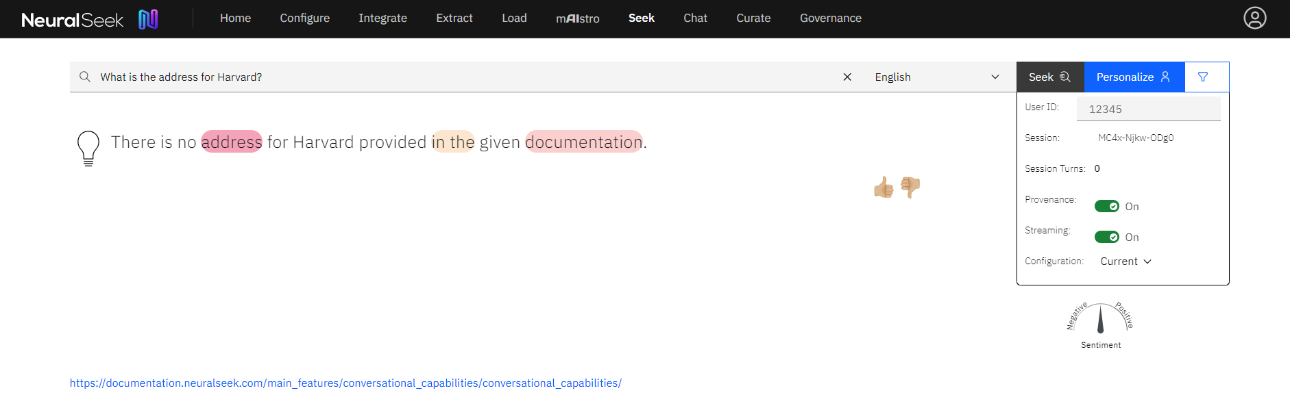 Navigate to the Seek screen of NeuralSeek.